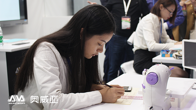 智慧實(shí)訓(xùn)空間是本次展會(huì)最火爆的奧威亞區(qū)域,圍觀人員絡(luò)繹不絕,大家都對(duì)“智慧實(shí)訓(xùn)”這一新穎的教學(xué)形式產(chǎn)生了濃厚興趣。在智慧實(shí)訓(xùn)空間里,有2名的學(xué)生坐縫紉機(jī)前,專(zhuān)注地進(jìn)行著縫紉訓(xùn)練。?