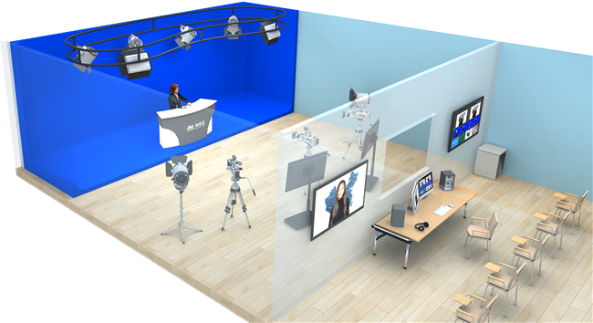 虛擬演播廳除了可以開展學(xué)生播報新聞的錄制工作,同時還能滿足微課錄制的需求。通過系統(tǒng)自帶的導(dǎo)播系統(tǒng),管理人員可以通過鼠標(biāo)操作進(jìn)行導(dǎo)播,拍攝精品微課,最大化發(fā)揮學(xué)校的投資價值。