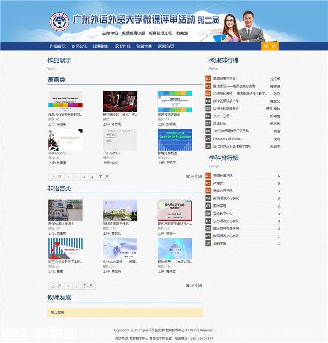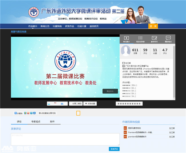 廣外深知微課大賽會涉及多項繁雜的步驟工作,并找到知名錄播廠家奧威亞。針對廣外的實際情況,奧威亞在應用平臺上專門設計打造了微課比賽活動的欄目,將傳統(tǒng)的評課步驟一一簡化?,F(xiàn)在,評課專家可以在線上完成所有的評課步驟,再也不用看到厚厚的紙質評價表了~
