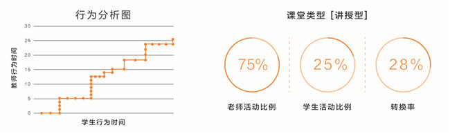 除了能節(jié)省評課的時間以外,奧威亞更是為評課專家提供實實在在的評課協(xié)助。在課程錄制的過程中,系統(tǒng)將自動分析視頻數(shù)據(jù),并對應生成ST行為分析圖和教學行為活動餅圖,為評課專家提供更直觀的客觀數(shù)據(jù)。