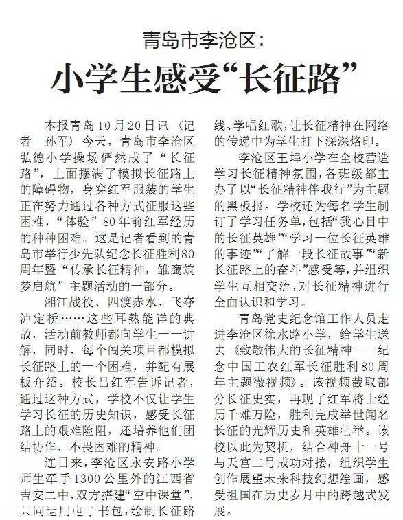 “長(zhǎng)征精神”需要傳承和延續(xù),新時(shí)代的學(xué)生需要?jiǎng)?chuàng)新與成長(zhǎng)。得益于教育信息的發(fā)展,兩地的學(xué)生得以“零距離”互動(dòng)交流,更通過(guò)新型的教育方式將“長(zhǎng)征精神”深植心中。弘揚(yáng)長(zhǎng)征精神,走好今天的長(zhǎng)征路。