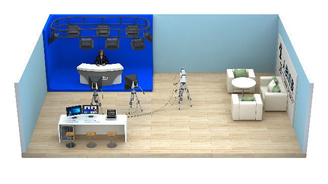 考慮到用戶的不同需求,我們?cè)O(shè)計(jì)了2種實(shí)現(xiàn)方式。當(dāng)學(xué)校需要完成人物訪談、新聞發(fā)布、校長(zhǎng)談話等實(shí)景拍攝的場(chǎng)景時(shí),可以采用實(shí)景拍攝的方式。當(dāng)想要完成譬如新聞播報(bào)、軍訓(xùn)、校運(yùn)會(huì)、校慶、電視比賽、名師大講堂等不同的場(chǎng)景時(shí),學(xué)??梢圆捎锰摂M摳像的方式實(shí)現(xiàn)。