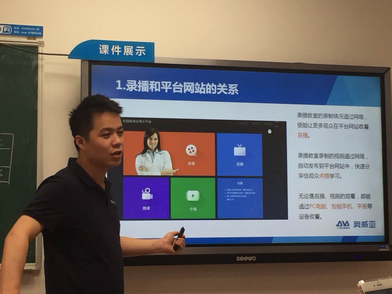 本次活動中,奧威亞推廣服務(wù)部對精品錄播、專遞課堂錄播、電子云鏡錄播、移動錄播、校園電視臺和虛擬微課等方案進(jìn)行了講解和演示。